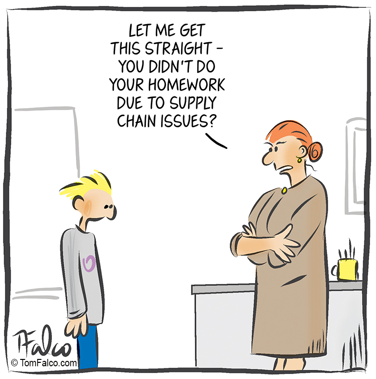 Those pesky supply chain issues Published here daily/also here:Facebook.com/Tomversation.toonsInstagram.com/tomversation.toonsRead my blog: Tomversation.comSubscribe via email here Sharing is caring Click to share on LinkedIn (Opens in new window) LinkedIn Click to share on Facebook (Opens in new window) Facebook Click to share on Pinterest (Opens in new window) Pinterest Click to share on Tumblr (Opens in new window) Tumblr Click to share on Reddit (Opens in new window) Reddit Click to share on X (Opens in new window) X Click to email a link to a friend (Opens in new window) Email Like Loading... Related