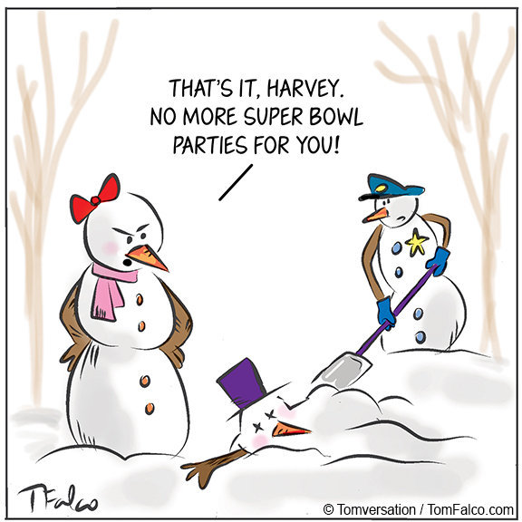 Harvey’s Super Bowl party Published here daily/also here:Facebook.com/Tomversation.toonsInstagram.com/tomversation.toonsRead my blog: Tomversation.comSubscribe via email here Sharing is caring Click to share on LinkedIn (Opens in new window) LinkedIn Click to share on Facebook (Opens in new window) Facebook Click to share on Pinterest (Opens in new window) Pinterest Click to share on Tumblr (Opens in new window) Tumblr Click to share on Reddit (Opens in new window) Reddit Click to share on X (Opens in new window) X Click to email a link to a friend (Opens in new window) Email Like Loading...