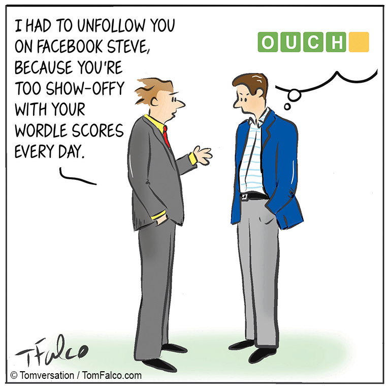 Show-offy WORDLE Published here daily/also here:Facebook.com/Tomversation.toonsInstagram.com/tomversation.toonsRead my blog: Tomversation.comSubscribe via email here Sharing is caring Click to share on LinkedIn (Opens in new window) LinkedIn Click to share on Facebook (Opens in new window) Facebook Click to share on Pinterest (Opens in new window) Pinterest Click to share on Tumblr (Opens in new window) Tumblr Click to share on Reddit (Opens in new window) Reddit Click to share on X (Opens in new window) X Click to email a link to a friend (Opens in new window) Email Like Loading... Related