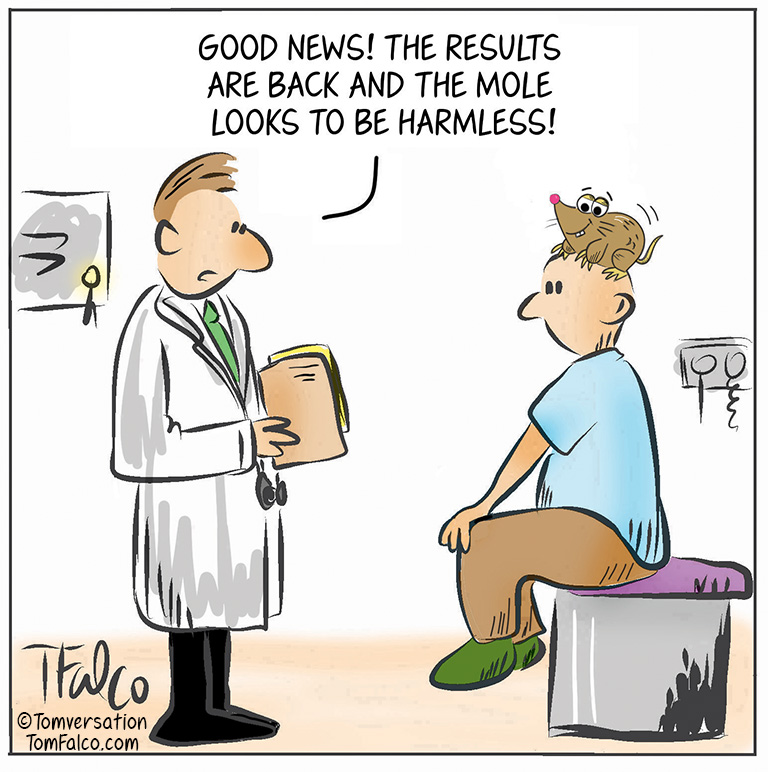 The mole is benign Published here Mon-Fri / also here: Facebook.com/Tomversation.toons Instagram.com/tomversation.toons Read my blog: Tomversation.com Subscribe via email to this daily comic here Sharing is caring Share on LinkedIn (Opens in new window) LinkedIn Share on Facebook (Opens in new window) Facebook Share on Pinterest (Opens in new window) Pinterest Share on Tumblr (Opens in new window) Tumblr Share on Reddit (Opens in new window) Reddit Share on X (Opens in new window) X Email a link to a friend (Opens in new window) Email Like Loading...