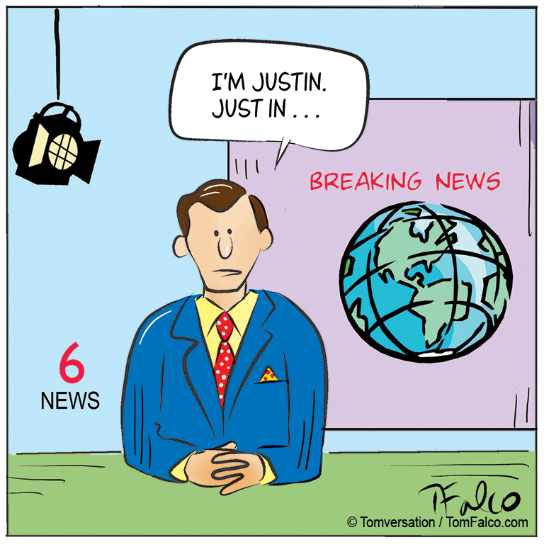 This Just in . . . Published here Mon-Fri / also here: Facebook.com/Tomversation.toons Instagram.com/tomversation.toons Read my blog: Tomversation.com Subscribe via email to this daily comic here Sharing is caring Click to share on LinkedIn (Opens in new window) LinkedIn Click to share on Facebook (Opens in new window) Facebook Click to share on Pinterest (Opens in new window) Pinterest Click to share on Tumblr (Opens in new window) Tumblr Click to share on Reddit (Opens in new window) Reddit Click to share on X (Opens in new window) X Click to email a link to a friend (Opens in new window) Email Like Loading...