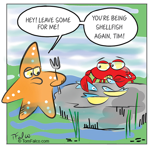 Selfish shellfish Published here Mon-Fri / also here: Facebook.com/Tomversation.toons Instagram.com/tomversation.toons Read my blog: Tomversation.com Subscribe via email to this daily comic here Sharing is caring Click to share on LinkedIn (Opens in new window) LinkedIn Click to share on Facebook (Opens in new window) Facebook Click to share on Pinterest (Opens in new window) Pinterest Click to share on Tumblr (Opens in new window) Tumblr Click to share on Reddit (Opens in new window) Reddit Click to share on X (Opens in new window) X Click to email a link to a friend (Opens in new window) Email Like Loading...