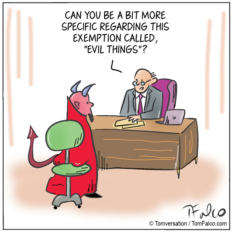 The exemption Published here Mon-Fri / also here: Facebook.com/Tomversation.toons Instagram.com/tomversation.toons Read my blog: Tomversation.com Subscribe via email to this daily comic here Sharing is caring Share on LinkedIn (Opens in new window) LinkedIn Share on Facebook (Opens in new window) Facebook Share on Pinterest (Opens in new window) Pinterest Share on Tumblr (Opens in new window) Tumblr Share on Reddit (Opens in new window) Reddit Share on X (Opens in new window) X Email a link to a friend (Opens in new window) Email Like Loading...