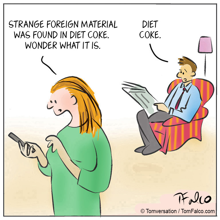 Diet Coke Published here Mon-Fri / also here: Facebook.com/Tomversation.toons Instagram.com/tomversation.toons Read my blog: Tomversation.com Subscribe via email to this daily comic here Sharing is caring Click to share on LinkedIn (Opens in new window) LinkedIn Click to share on Facebook (Opens in new window) Facebook Click to share on Pinterest (Opens in new window) Pinterest Click to share on Tumblr (Opens in new window) Tumblr Click to share on Reddit (Opens in new window) Reddit Click to share on X (Opens in new window) X Click to email a link to a friend (Opens in new window) Email Like Loading... Related