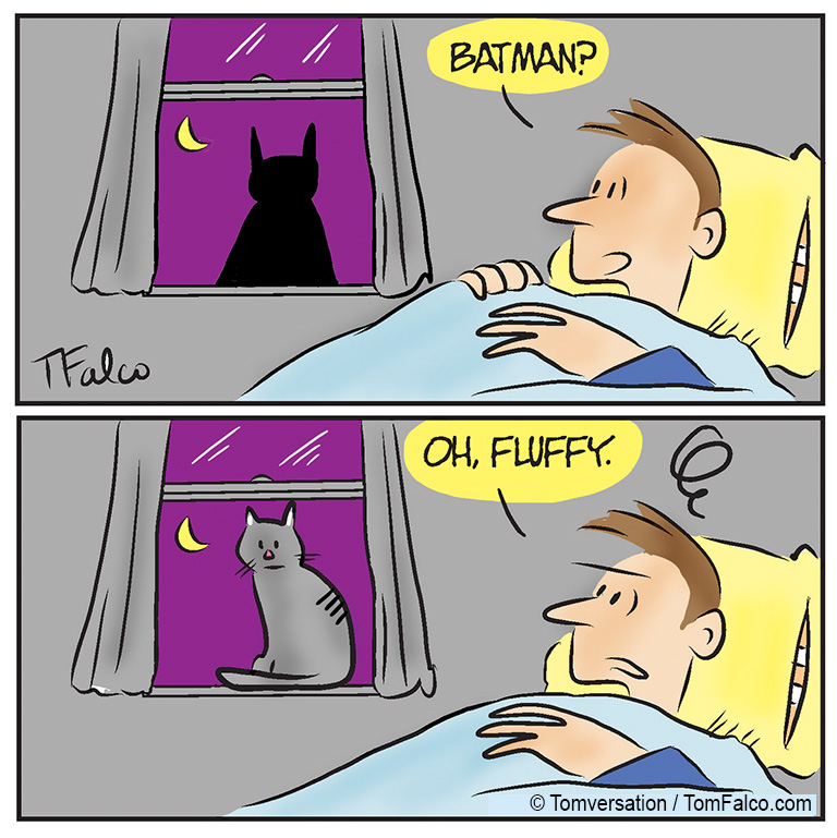 Batman, catman Published here Mon-Fri / also here: Facebook.com/Tomversation.toons Instagram.com/tomversation.toons Read my blog: Tomversation.com Subscribe via email to this daily comic here Sharing is caring Click to share on LinkedIn (Opens in new window) LinkedIn Click to share on Facebook (Opens in new window) Facebook Click to share on Pinterest (Opens in new window) Pinterest Click to share on Tumblr (Opens in new window) Tumblr Click to share on Reddit (Opens in new window) Reddit Click to share on X (Opens in new window) X Click to email a link to a friend (Opens in new window) Email Like Loading... Related
