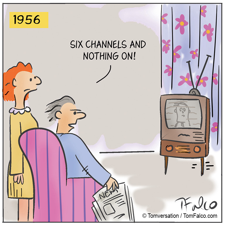 Boob tube Published here Mon-Fri / also here: Facebook.com/Tomversation.toons Instagram.com/tomversation.toons Read my blog: Tomversation.com Subscribe via email to this daily comic here Sharing is caring Click to share on LinkedIn (Opens in new window) LinkedIn Click to share on Facebook (Opens in new window) Facebook Click to share on Pinterest (Opens in new window) Pinterest Click to share on Tumblr (Opens in new window) Tumblr Click to share on Reddit (Opens in new window) Reddit Click to share on X (Opens in new window) X Click to email a link to a friend (Opens in new window) Email Like Loading... Related