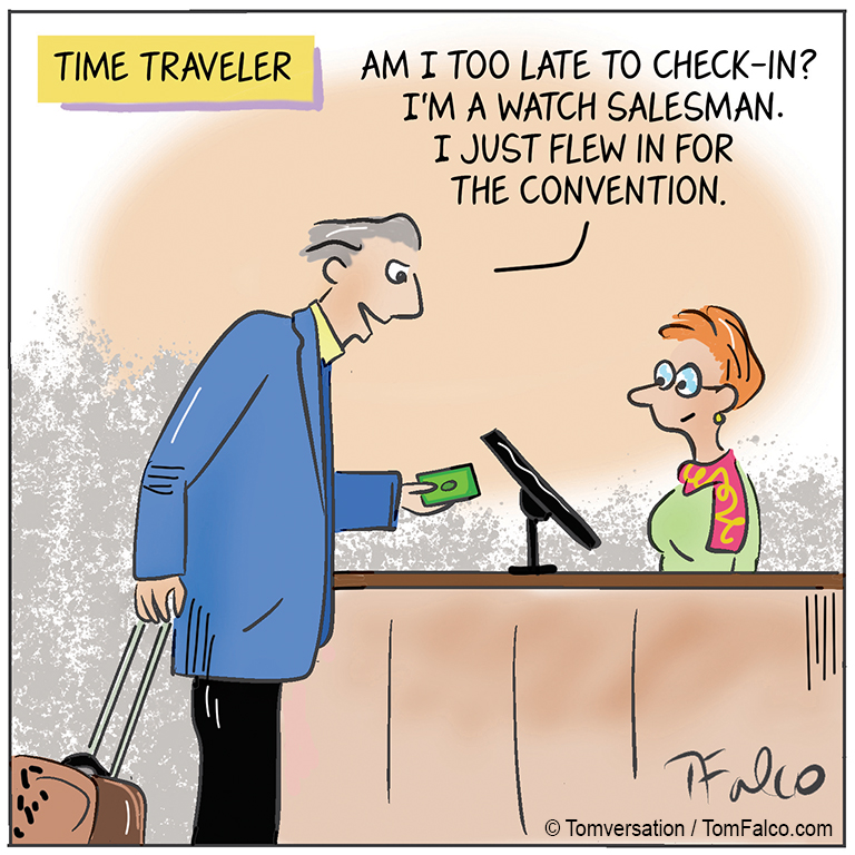 He’s a late time traveler Published here Mon-Fri / also here: Facebook.com/Tomversation.toons Instagram.com/tomversation.toons Read my blog: Tomversation.com Subscribe via email to my daily cartoon here Sharing is caring Click to share on LinkedIn (Opens in new window) LinkedIn Click to share on Facebook (Opens in new window) Facebook Click to share on Pinterest (Opens in new window) Pinterest Click to share on Tumblr (Opens in new window) Tumblr Click to share on Reddit (Opens in new window) Reddit Click to share on X (Opens in new window) X Click to email a link to a friend (Opens in new window) Email Like Loading... Related