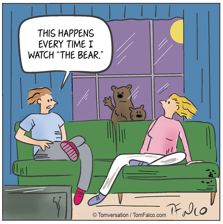 The Bear Published here Mon-Fri / also here: Facebook.com/Tomversation.toons Instagram.com/tomversation.toons Read my blog: Tomversation.com Subscribe via email to my daily cartoon here Sharing is caring Click to share on LinkedIn (Opens in new window) LinkedIn Click to share on Facebook (Opens in new window) Facebook Click to share on Pinterest (Opens in new window) Pinterest Click to share on Tumblr (Opens in new window) Tumblr Click to share on Reddit (Opens in new window) Reddit Click to share on X (Opens in new window) X Click to email a link to a friend (Opens in new window) Email Like Loading... Related