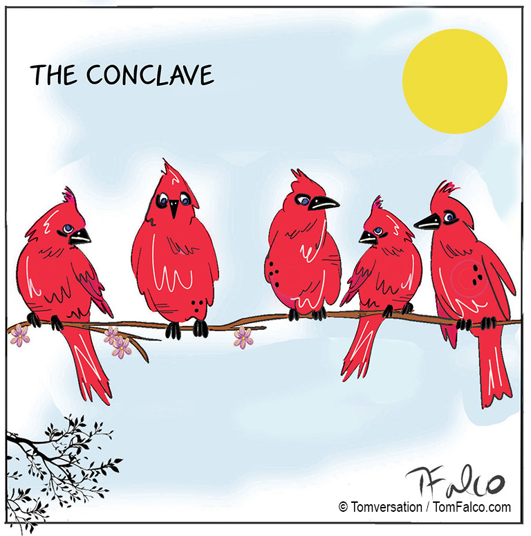 Cardinal conclave Published here Mon-Fri / also here: Facebook.com/Tomversation.toons Instagram.com/tomversation.toons Read my blog: Tomversation.com Subscribe via email to my daily cartoon here Sharing is caring Click to share on LinkedIn (Opens in new window) LinkedIn Click to share on Facebook (Opens in new window) Facebook Click to share on Pinterest (Opens in new window) Pinterest Click to share on Tumblr (Opens in new window) Tumblr Click to share on Reddit (Opens in new window) Reddit Click to share on X (Opens in new window) X Click to email a link to a friend (Opens in new window) Email Like Loading... Related