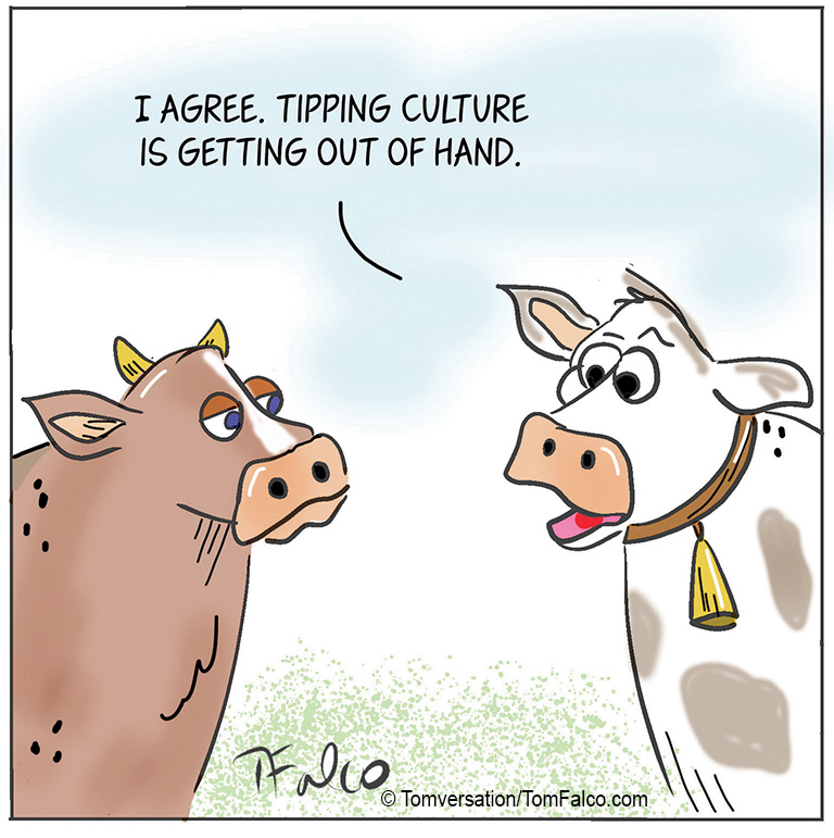 Tipping culture Published here Mon-Fri / also here: Facebook.com/Tomversation.toons Instagram.com/tomversation.toons Read my blog: Tomversation.com Subscribe via email to my daily cartoon here Sharing is caring Click to share on LinkedIn (Opens in new window) LinkedIn Click to share on Facebook (Opens in new window) Facebook Click to share on Pinterest (Opens in new window) Pinterest Click to share on Tumblr (Opens in new window) Tumblr Click to share on Reddit (Opens in new window) Reddit Click to share on X (Opens in new window) X Click to email a link to a friend (Opens in new window) Email Like Loading...